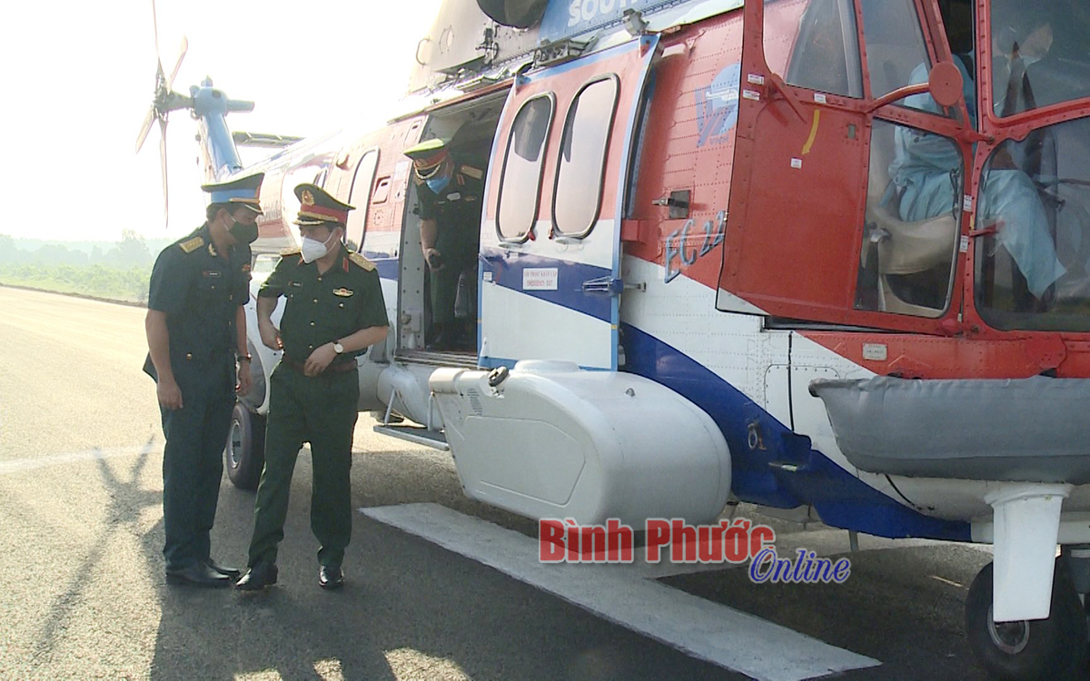 Thượng tướng Phan Văn Giang, Ủy viên Bộ Chính trị, Bộ trưởng Bộ Quốc phòng bước xuống chuyên cơ bắt đầu chuyến thăm Bình Phước
