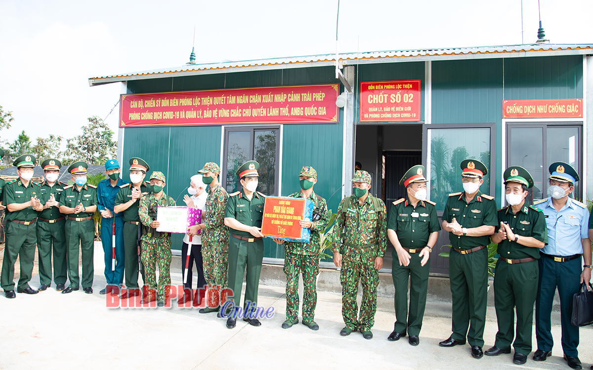Thượng tướng Phan Văn Giang, Ủy viên Bộ Chính trị, Bộ trưởng Bộ Quốc phòng thăm, tặng quà cán bộ, chiến sĩ chốt phòng, chống Covid-19 số 3 (Đồn biên phòng Lộc Thiện)