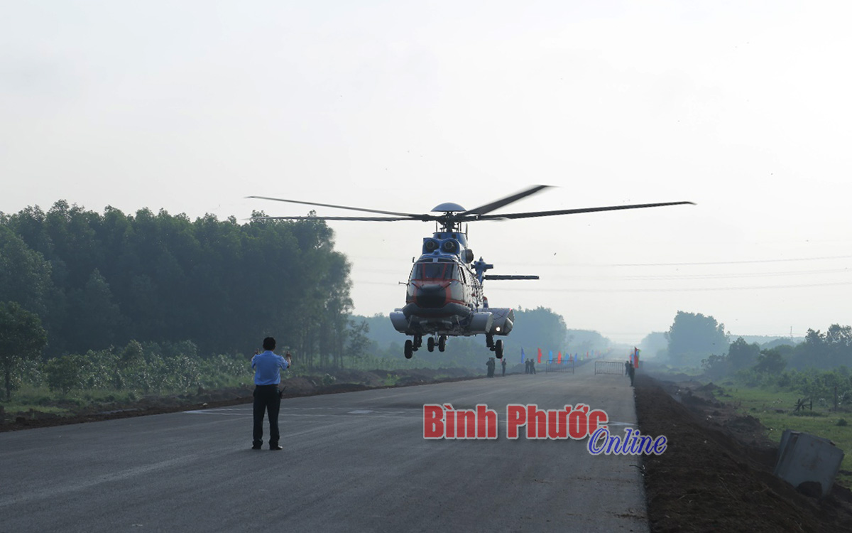 Trực thăng chở Thượng tướng Phan Văn Giang chuẩn bị hạ cánh xuống đường băng H2