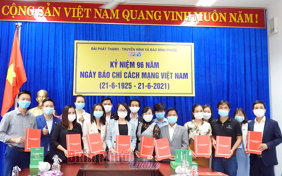 Dịp này, các doanh nghiêp đã có những lẵng hoa tươi thắm chúc mừng kỷ niệm 96 năm Ngày báo chí cách mạng Việt Nam. Đồng thời thực hiện ký kết hợp tác đồng hành với chương trình Ngôi nhà khởi nghiệp mùa 2 và một số chương trình khác của BPTV.