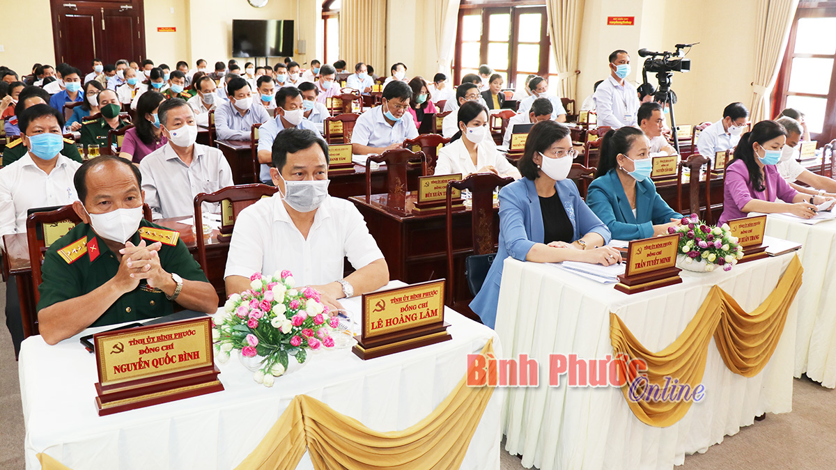 Báo cáo tại hội nghị nêu rõ, trong 6 tháng đầu năm 2021, Bình Phước tiếp tục thực hiện đảm bảo mục tiêu kép “vừa phòng chống dịch - vừa chăm lo phát triển kinh tế - xã hội”. Cải cách thủ tục hành chính, xây dựng chính quyền điện tử, chuyển đổi số đã có sự chuyển đổi mạnh mẽ, tạo hiệu hứng tích cực, thể hiện quyết tâm chính trị cao của hệ thống chính trị trong tỉnh.