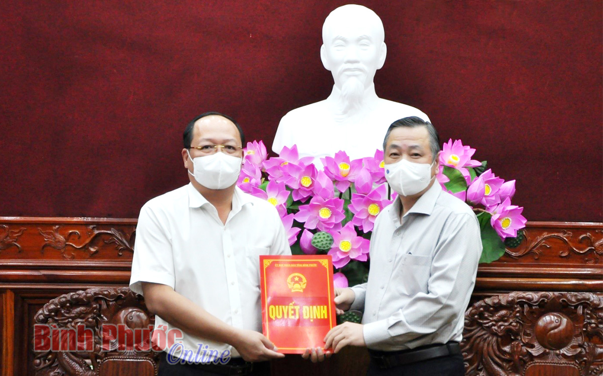 Phó chủ tịch UBND tỉnh Huỳnh Anh Minh trao quyết định sáp nhập cho đại diện lãnh đạo Ban quản lý Khu kinh tế