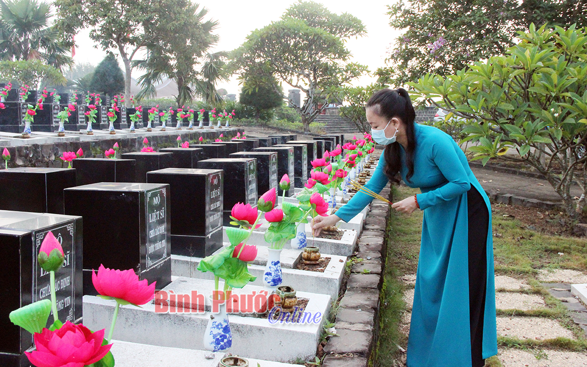 Với lòng thành kính và biết ơn vô hạn, ngay sau lễ viếng, đoàn đại biểu đã thắp nén hương thơm và đặt vòng hoa lên tượng đài Tổ quốc ghi công. Vòng hoa mang dòng chữ “Đời đời ghi nhớ công ơn các anh hùng liệt sĩ”. Đồng thời thắp hương lên từng phần mộ đang được an táng tại Nghĩa trang liệt sĩ tỉnh.