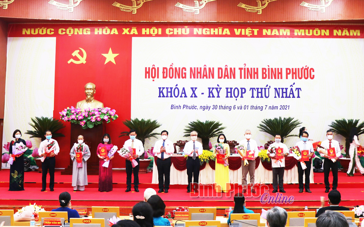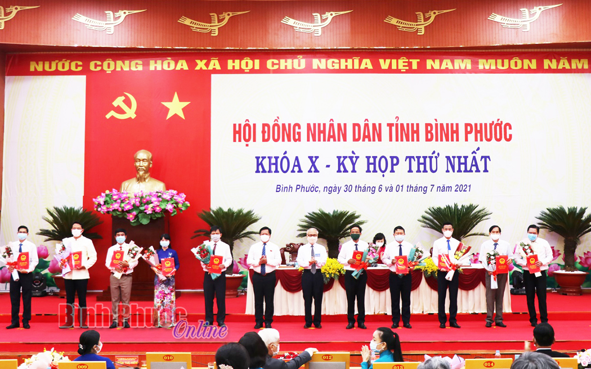 Thừa ủy quyền của Ủy ban bầu cử tỉnh, Giám đốc Sở Nội vụ Trần Thị Ánh Tuyết đã trình bày Nghị quyết xác nhận tư cách đại biểu HĐND tỉnh Bình Phước khóa X, nhiệm kỳ 2021-2026 đối với 60 đại biểu. Tiếp đó, Ủy ban bầu cử tỉnh đã trao giấy chứng nhận cho các đại biểu HĐND tỉnh.