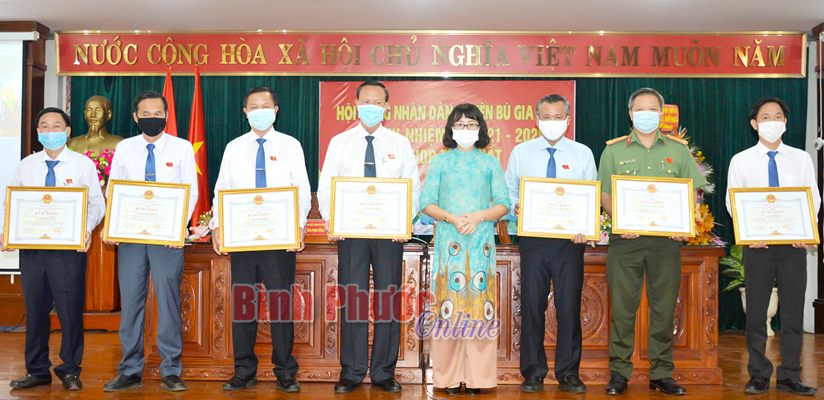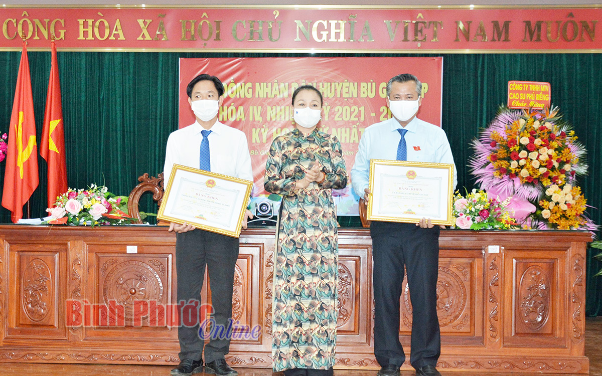 Tại kỳ họp, UBND tỉnh, Huyện ủy, UBND huyện đã trao tặng bằng khen, giấy khen cho các tổ chức, cá nhân có thành tích xuất sắc trong công tác bầu cử đại biểu Quốc hội và HĐND các cấp, nhiệm kỳ 2021-2026.