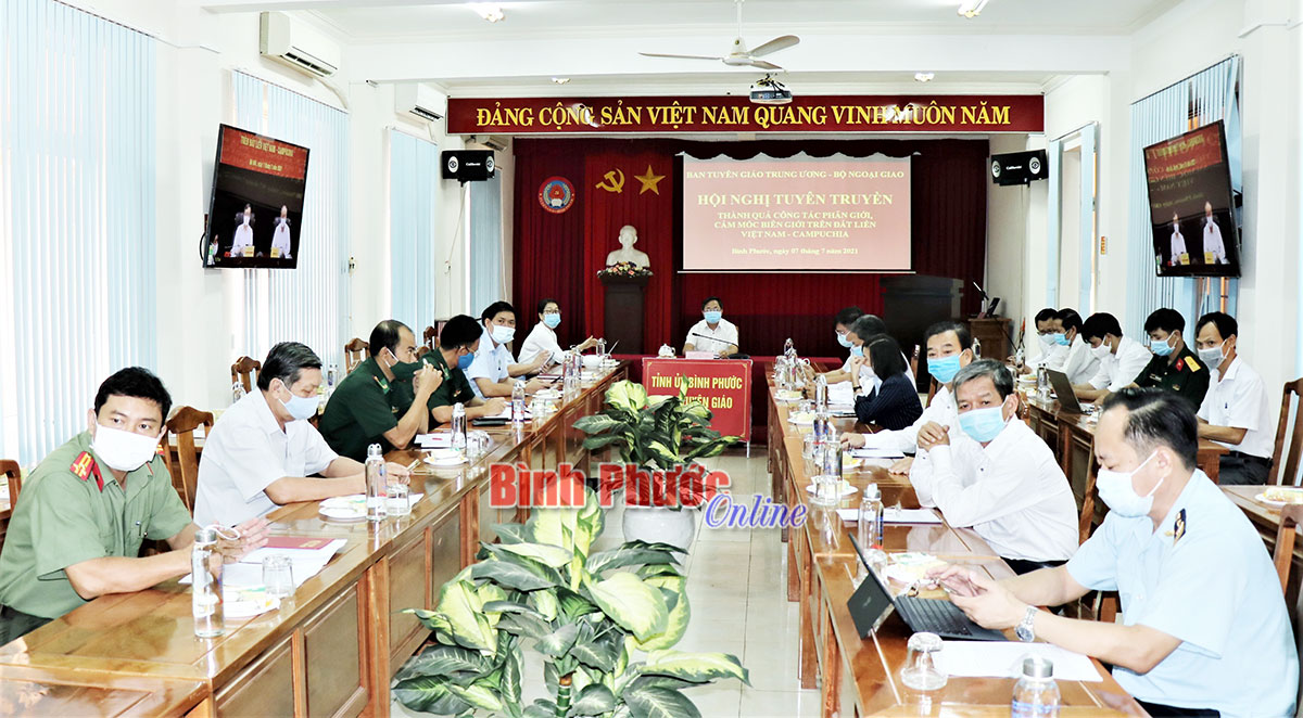 Hội nghị kết nối trực tuyến từ điểm cầu chính Ban Tuyên giáo Trung ương và 250 điểm cầu tại 10 tỉnh có đường biên với Vương quốc Campuchia. Tại điểm cầu Bình Phước, có đại diện lãnh đạo Ban Tuyên giáo Tỉnh ủy, Sở Ngoại vụ và một số sở, ngành.