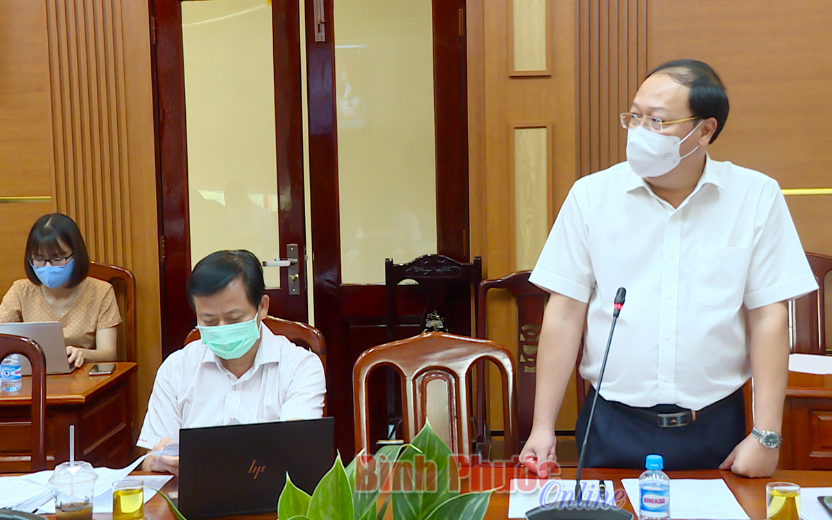 Lãnh đạo UBND huyện Chơn Thành báo cáo các giải pháp phòng chống dịch trong các khu công nghiệp