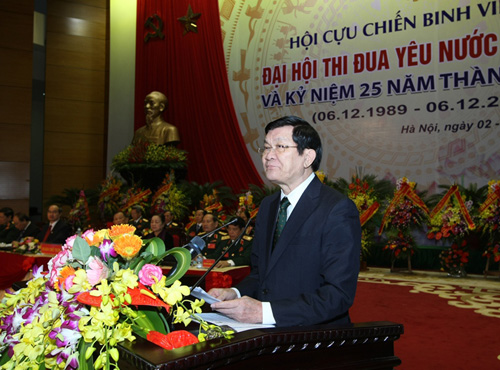 Phát biểu tại Đại hội, thay mặt lãnh đạo Đảng, Nhà nước, Chủ tịch nước Trương Tấn Sang đã chúc mừng và biểu dương những thành tích của Hội CCB Việt Nam 25 năm qua và thành tích của phong trào thi đua yêu nước “Cựu chiến binh gương mẫu” trong 5 năm qua. Chủ tịch nước Trương Tấn Sang nhấn mạnh, 25 năm, từ khi thành lập đến nay, dưới sự lãnh đạo của Đảng, quản lý của Nhà nước, của cấp ủy đảng và chính quyền địa phương, Hội CCB Việt Nam đã hoạt động tích cực và có hiệu quả, hoàn thành tốt chức năng, nhiệm vụ, thực sự trở thành một đoàn thể chính trị - xã hội vững mạnh, có uy tín cao và làm tốt vai trò đại diện cho ý chí và quyền lợi của CCB Việt Nam.