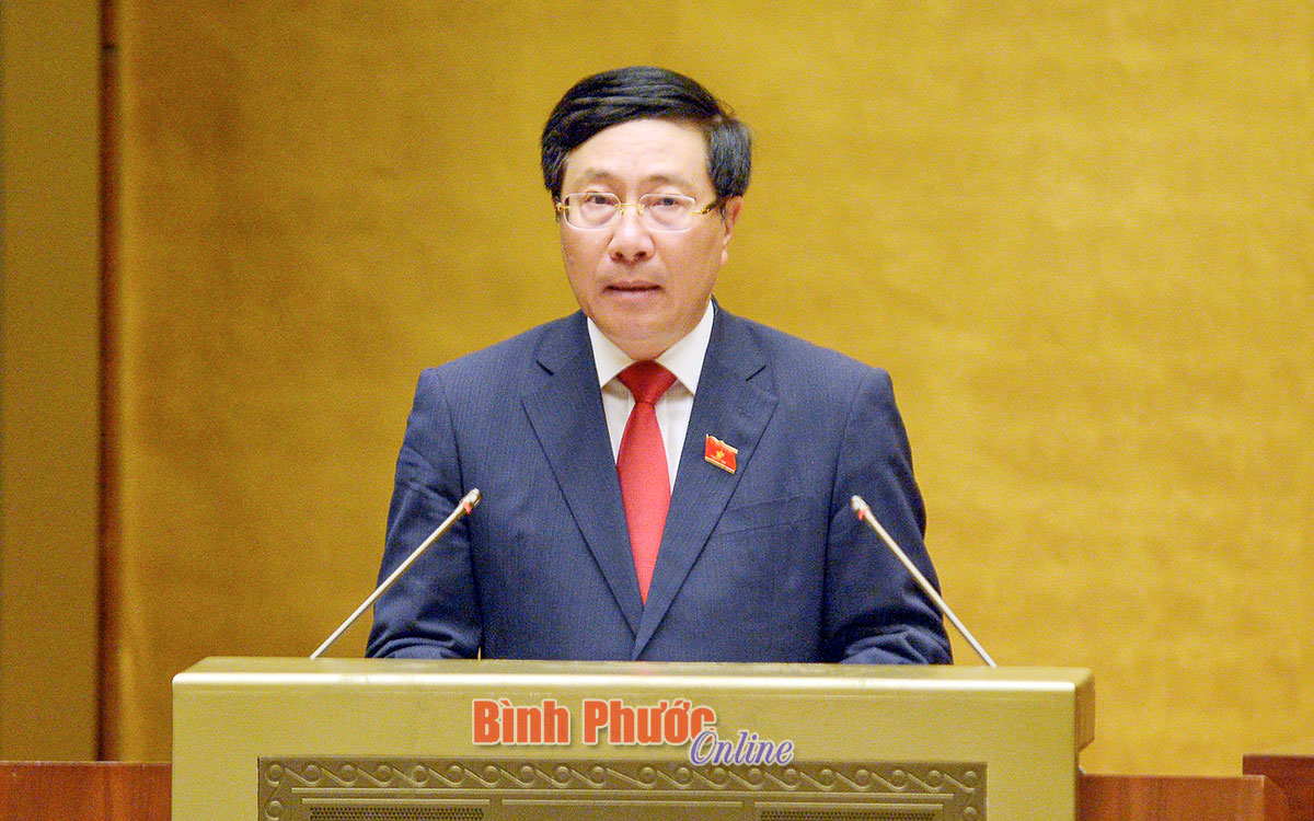 Phó thủ tướng Phạm Bình Minh trình bày báo cáo đánh giá kết quả thực hiện kế hoạch phát triển kinh tế - xã hội 6 tháng đầu năm 2021