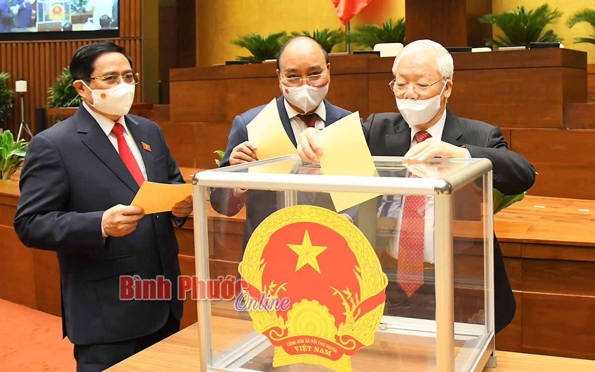 Tổng Bí thư Nguyễn Phú Trọng, Chủ tịch nước Nguyễn Xuân Phúc, Thủ tướng Phạm Minh Chính bỏ phiếu