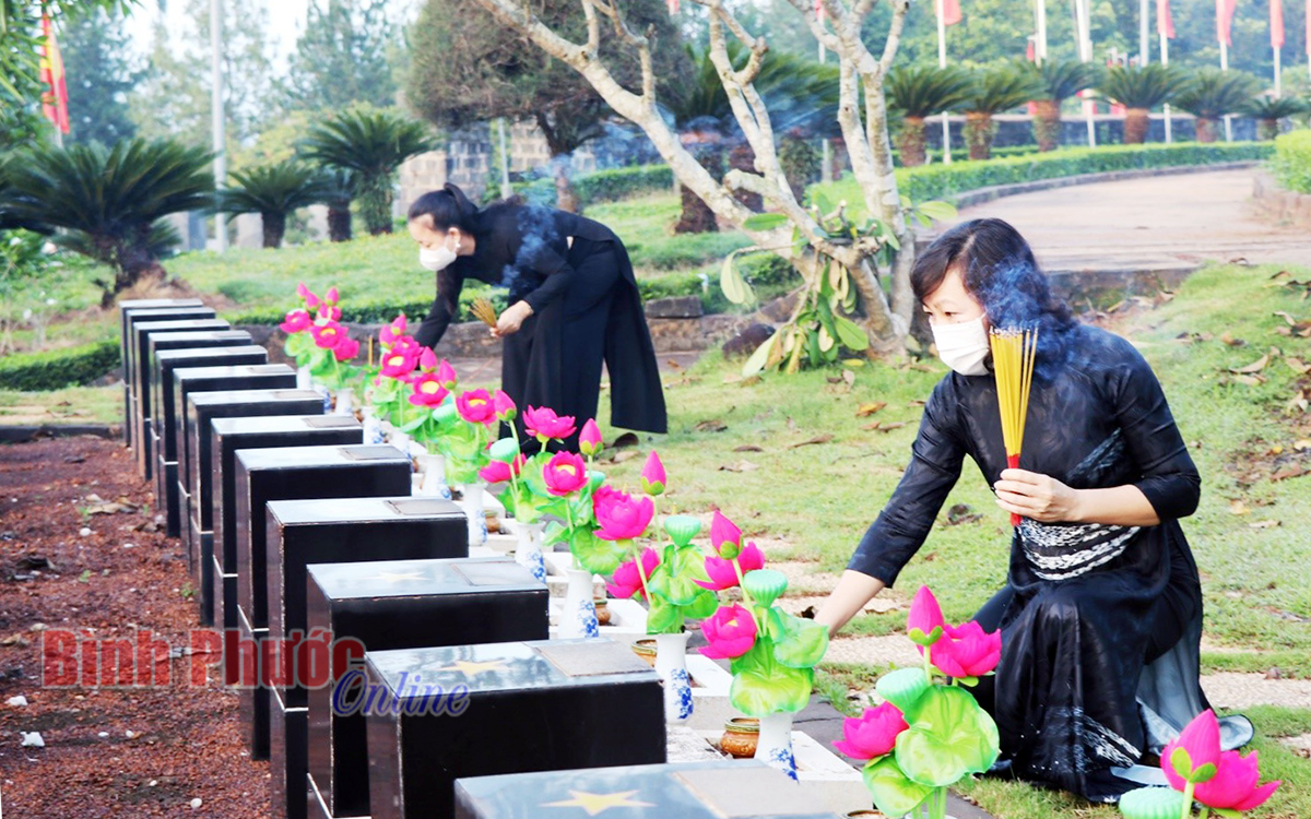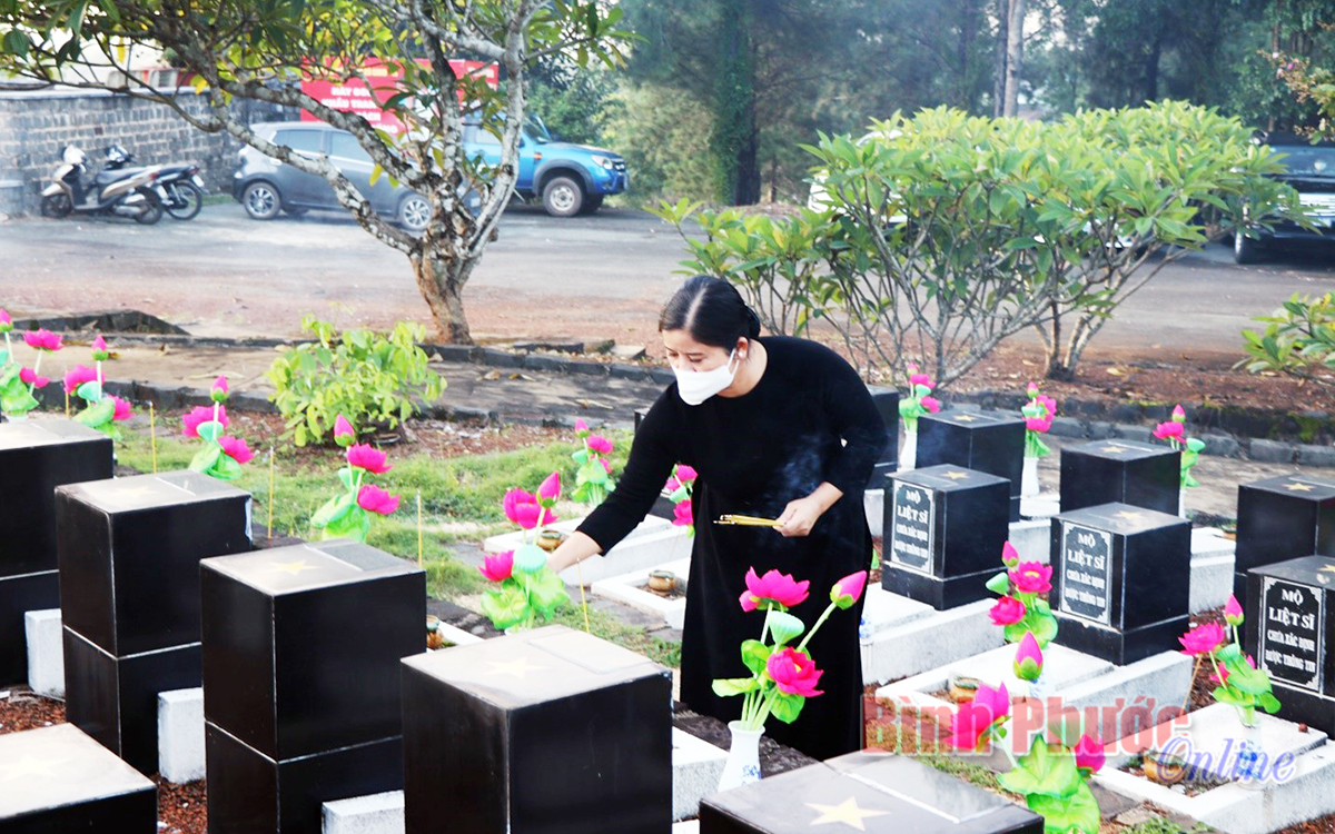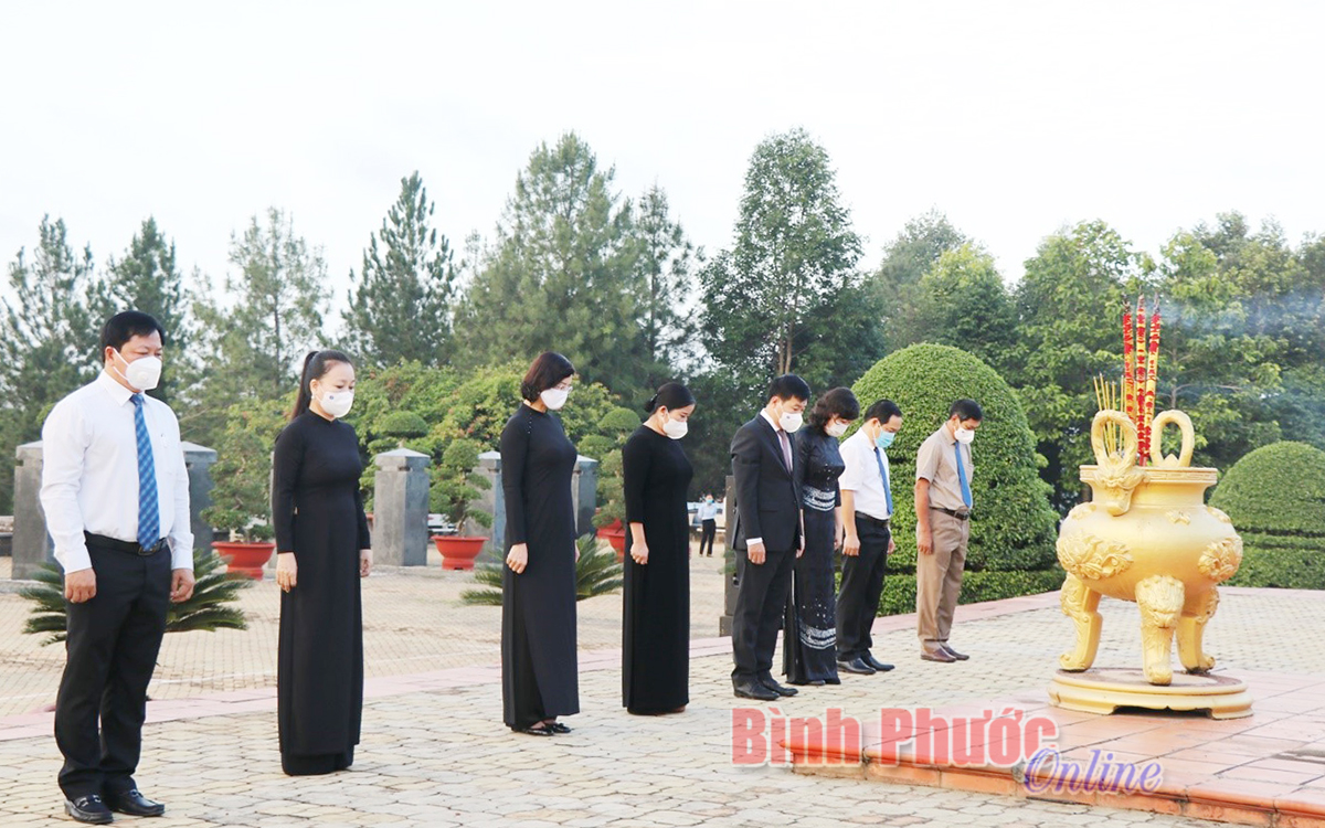 Lãnh đạo tỉnh thắp hương tại nơi tạm lưu hương hồn 43 liệt sĩ mới được quy tập ở ấp Măng Cải, xã Lộc Thiện, huyện Lộc Ninh tại Nghĩa trang liệt sĩ tỉnh