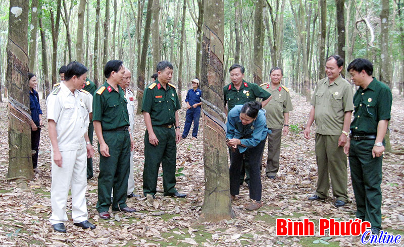 Cán bộ CCB tham quan vườn cao su năng suất cao của hội viên - Ảnh: HCCB