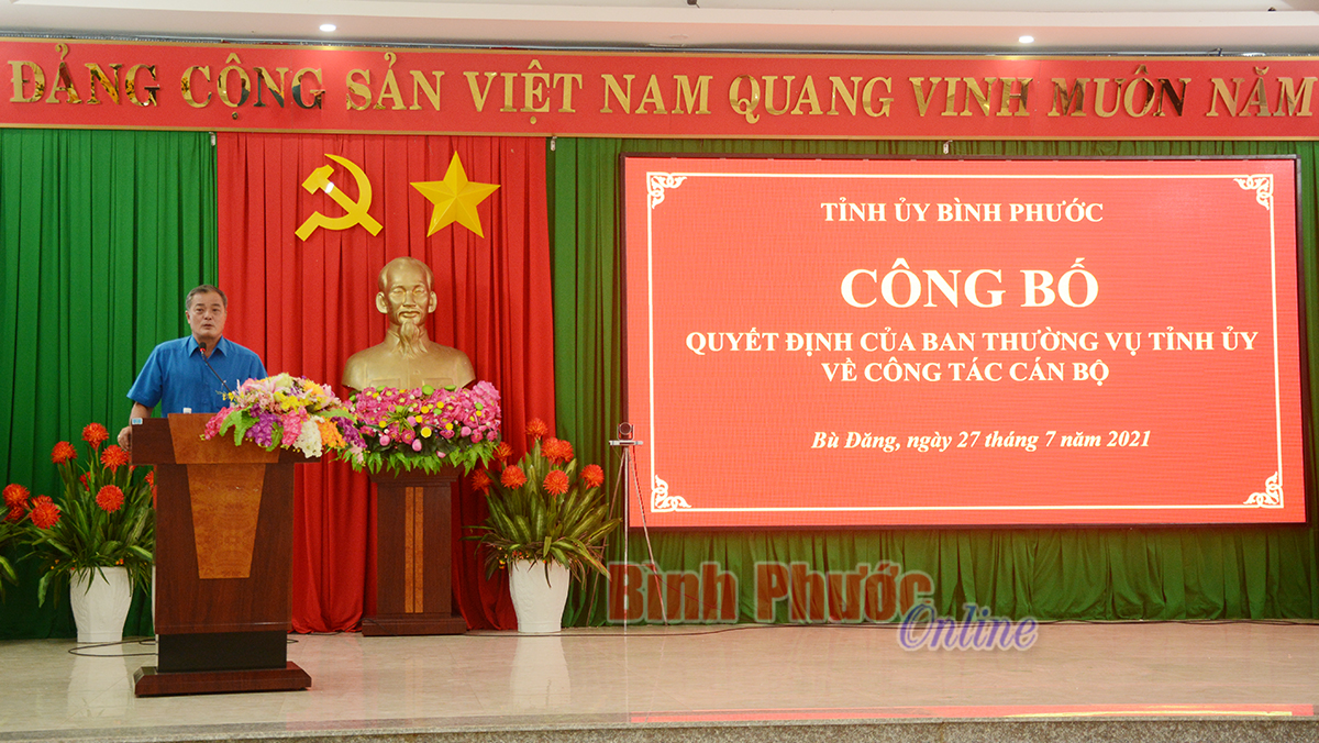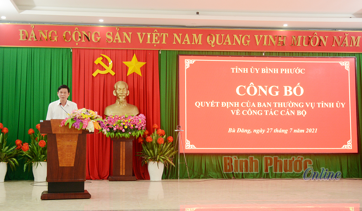 Tại buổi lễ, thừa ủy quyền của Thường trực Tỉnh ủy, Ủy viên Ban Thường vụ, Trưởng ban Tổ chức Tỉnh ủy Nguyễn Hồng Trà đã trao quyết định của Ban Thường vụ Tỉnh ủy điều động đồng chí Vũ Lương, Tỉnh ủy viên, Phó chủ nhiệm Thường trực Ủy ban Kiểm tra Tỉnh ủy, tham gia Ban Chấp hành, Ban Thường vụ Huyện ủy Bù Đăng, giữ chức Bí thư Huyện ủy nhiệm kỳ 2020-2025 kể từ ngày 26-7-2021.