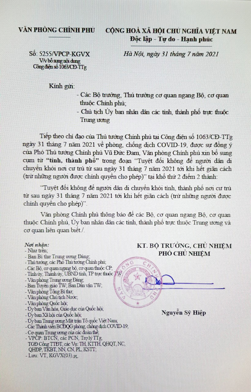 * Nội dung đã được cập nhật theo Công điện số 5255/VPCP-KGVX của Văn phòng Chính phủ ban hành ngày 31-7-2021.