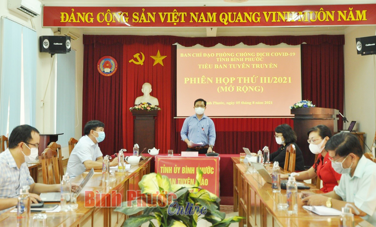 Tại cuộc họp, Ủy viên Ban Thường vụ, Trưởng ban Tuyên giáo Tỉnh ủy Hà Anh Dũng cho rằng,thời gian qua công tác tuyên truyền về phòng, chống Covid-19 trên địa bàn tỉnh đã được các sở, ban, ngành và các huyện, thị xã, thành phố đổi mới cả về nội dung lẫn cách thức. Công tác thông tin tương đối nhanh nhạy, kịp thời, để người dân nhanh chóng tiếp cận được chủ trương của tỉnh trong phòng, chống dịch bệnh.Qua đó, góp phần cùng với hệ thống chính trị quyết tâm thực hiện có hiệu quả “mục tiêu kép” vừa chống dịch, vừa phát triển kinh tế - xã hội.