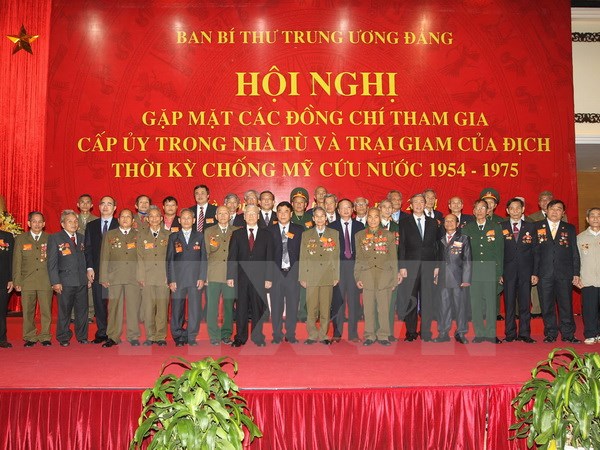Tổng Bí thư Nguyễn Phú Trọng, các vị lãnh đạo Đảng, Nhà nước chụp ảnh chung với các đại biểu đại diện cho những người tham gia cấp ủy trong nhà tù và trại giam của địch ngày 10-12Hơn 700.000 cán bộ, đảng viên, bộ đội, du kích, dân công, trí thức, quần chúng yêu nước… đã bị giam giữ, tra tấn, đàn áp trong các nhà tù và trại giam của địch.