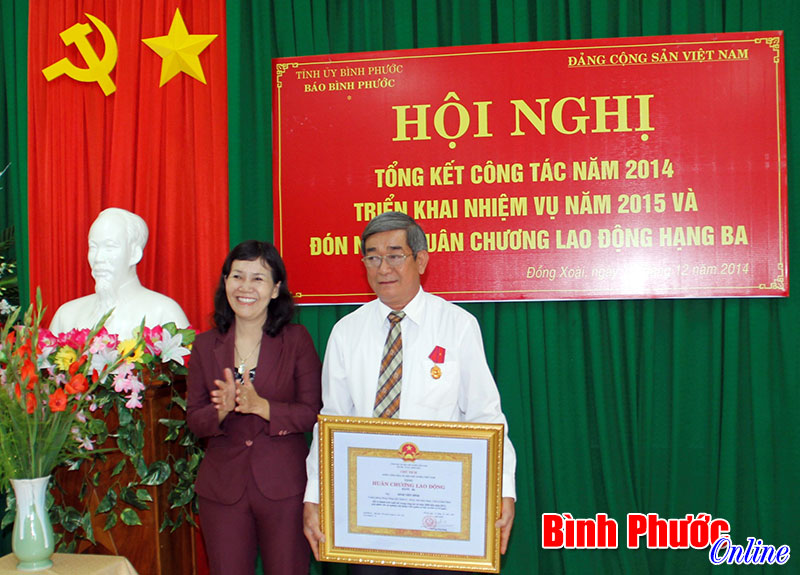 Ghi nhận những cố gắng, nỗ lực và nhiều thành tích đạt được trong thời gian qua, thừa ủy quyền của Chủ tịch nước, các đồng chí: Trịnh Thị Nga, Vũ Sỹ Thắng đã trao tặng Huân chương Lao động hạng Ba cho tập thể cán bộ, phóng viên, nhân viên Báo Bình Phước và cá nhân đồng chí Đinh Tiến Bình, Trưởng phòng Phóng viên Chính trị - Xã hội.