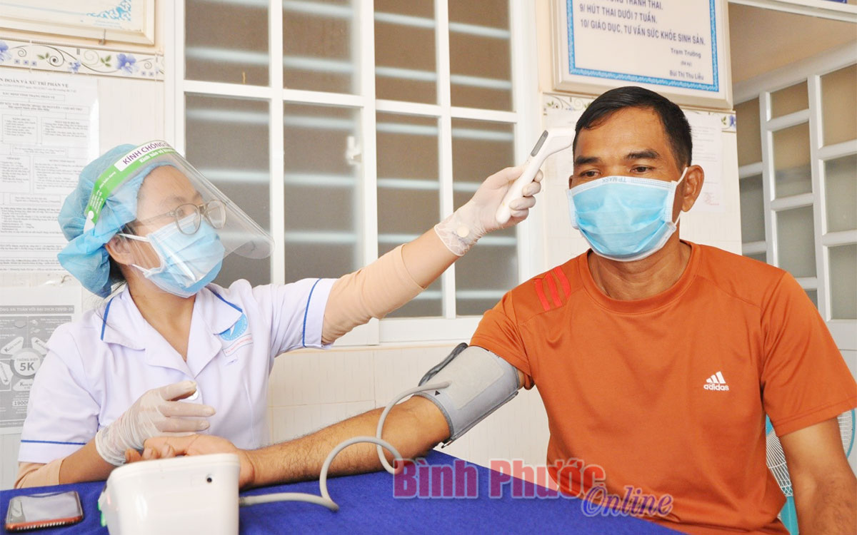 Không chỉ được ưu tiên tiêm vắc xin đợt này, ông Điểu Broi, dân tộc S’tiêng, ấp Bù Tam, xã Hưng Phước còn được đội ngũ y, bác sĩ Trạm y tế xã nhiệt tình thăm khám, sàng lọc, tư vấn sức khỏe trước khi tiêm.