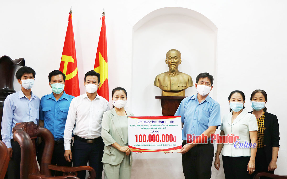 Dịp này, đoàn đã tặng 100 triệu đồng từ Quỹ vận động phòng, chống Covid-19 của tỉnh cho thị xã Bình Long để thực hiện công tác phòng, chống dịch trên địa bàn.