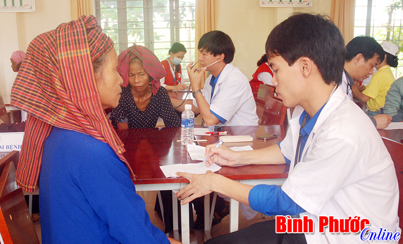 Mỗi năm CLB thầy thuốc trẻ tổ chức hàng chục đợt về khám bệnh tình nguyện cho người nghèo. (Trong ảnh: Thành viên câu lạc bộ thầy thuốc trẻ tỉnh đang khám chữa bệnh miễn phí cho đồng bào nghèo ở huyện Hớn Quản)