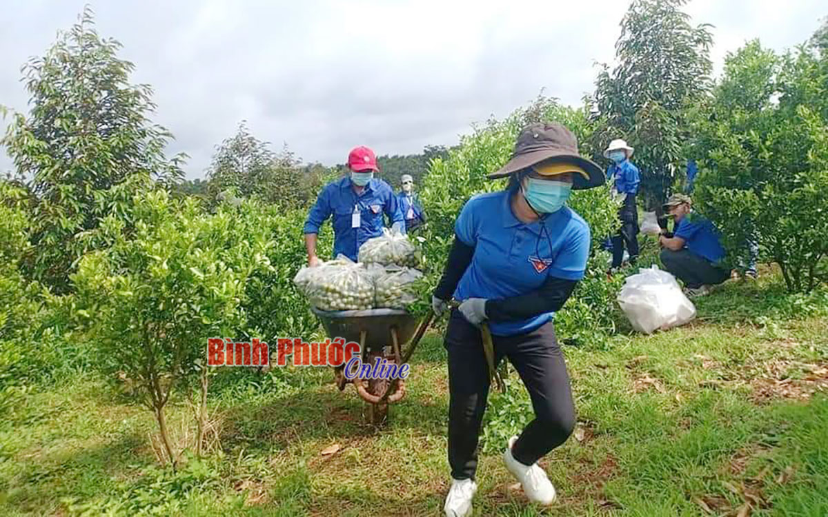 Đoàn viên thanh niên huyện Bù Đăng hỗ trợ nông dân thu hoạch nông sản