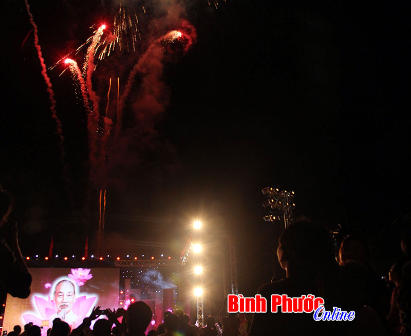 Hàng vạn người dân Phước Long tới dự lễ kỷ niệm và xem bắn pháo bông đêm 5-1