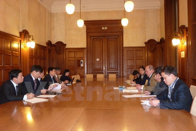 Đoàn lãnh đạo Học viện Chính trị Quốc gia Hồ Chí Minh làm việc với lãnh đạo Học viện Hành chính liên bang Áo.