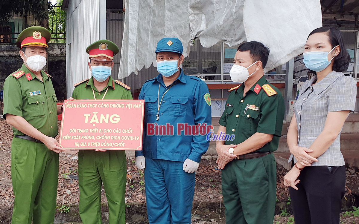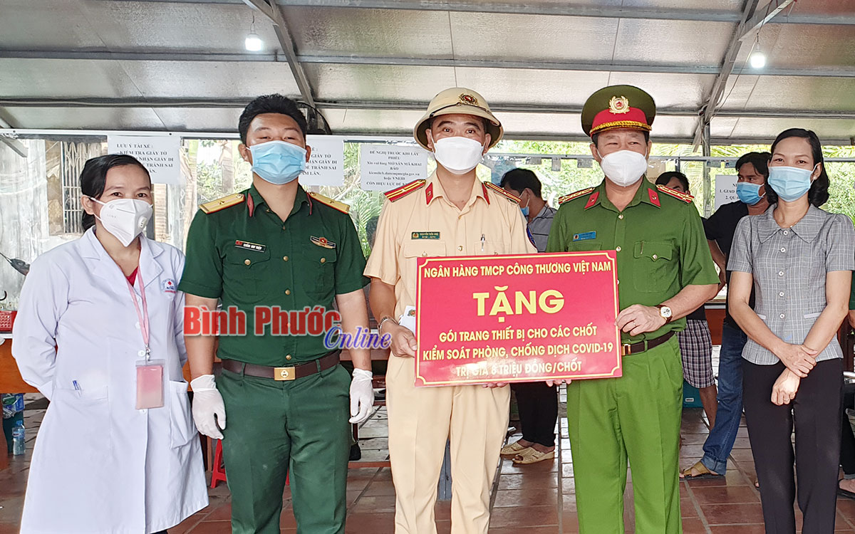 Đoàn cũng đến thăm chốt kiểm soát, phòng, chống dịch Covid-19 do huyện Chơn Thành thành lập trên tuyến Quốc lộ 14, thuộc xã Minh Lập và tặng gói trang thiết bị trị giá 8 triệu đồng cùng 5 triệu đồng tiền mặt.