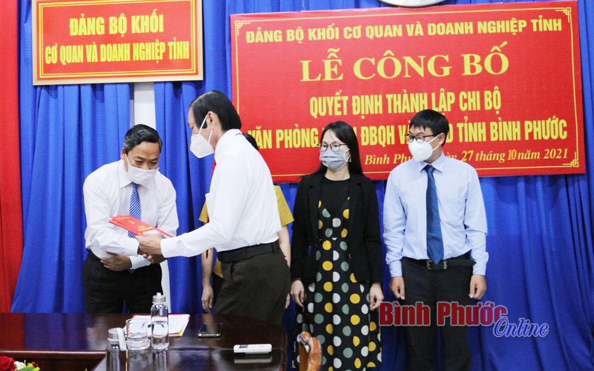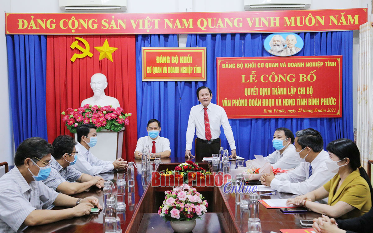 Phát biểu tại buổi trao quyết định, Tỉnh ủy viên, Bí thư Đảng ủy Khối CQ&DN tỉnh Nguyễn Phúc Hậu đã bày tỏ sự vui mừng vì có một cơ sở đảng mạnh trên nền tảng 2 chi bộ cùng chức năng, nhiệm vụ hoạt động tham mưu, giúp việc cho Đoàn ĐBQH và HĐND tỉnh, có số đảng viên đông đảo, đủ tiêu chí thành lập Đảng bộ.