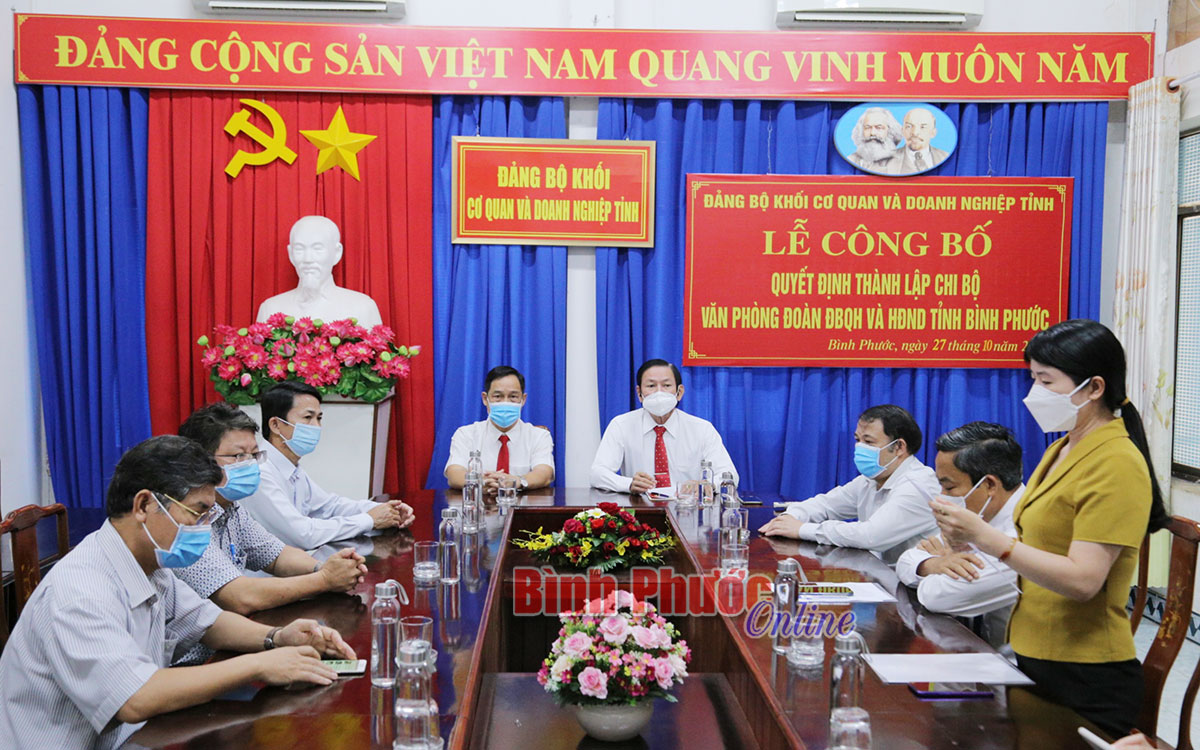 Ban Thường vụ Đảng ủy Khối CQ&DN tỉnh đã ban hành Quyết định số 152-QĐ/ĐUK về việc thành lập Chi bộ Văn phòng Đoàn ĐBQH và HĐND tỉnh nhiệm kỳ 2020-2025 gồm 30 đảng viên, trên cơ sở hợp nhất Chi bộ Văn phòng Đoàn ĐBQH và Chi bộ Văn phòng HĐND tỉnh. Chi bộ mới sẽ xây dựng quy chế làm việc, nhiệm vụ chính trị và tổ chức hoạt động theo đúng chức năng, nhiệm vụ do điều lệ Đảng quy định.