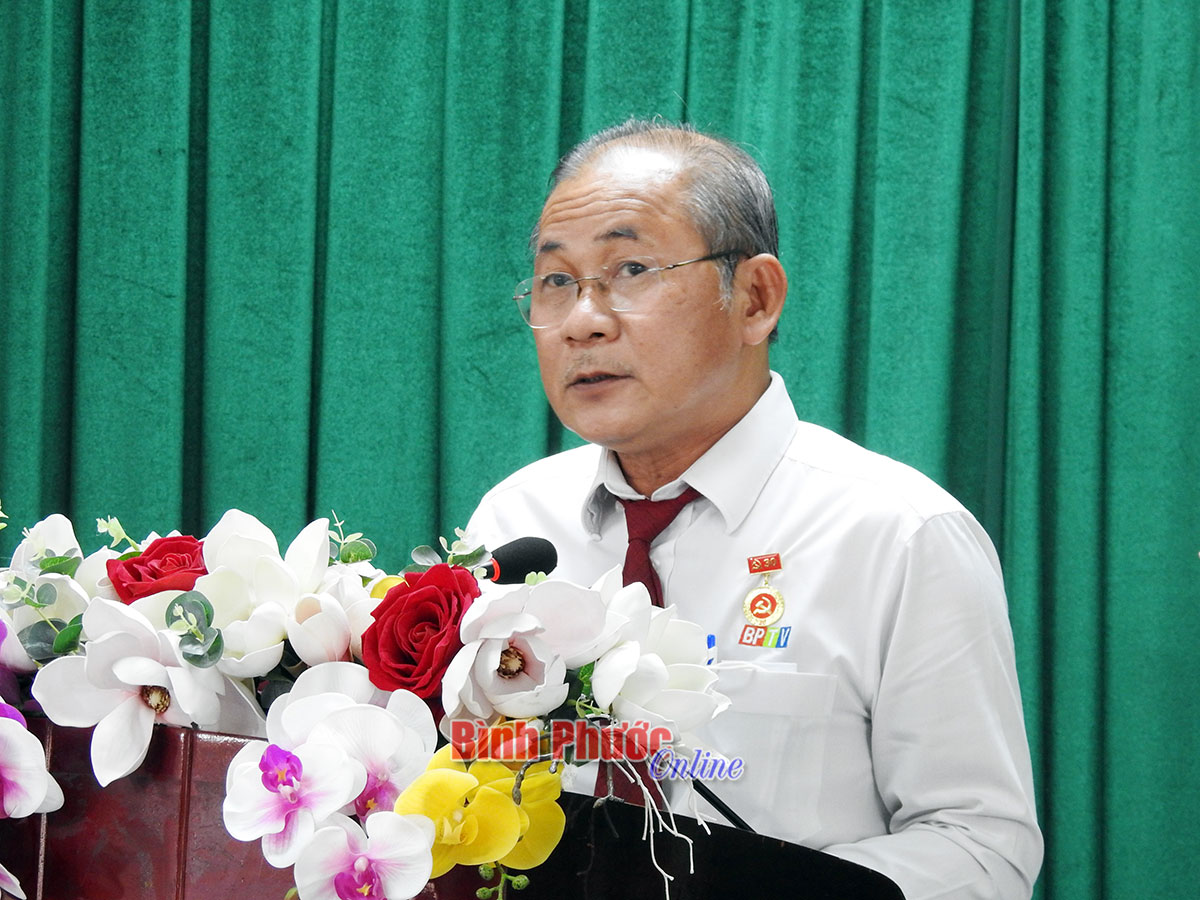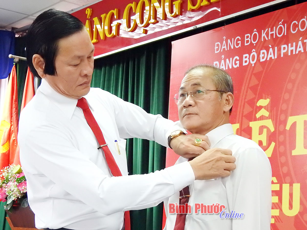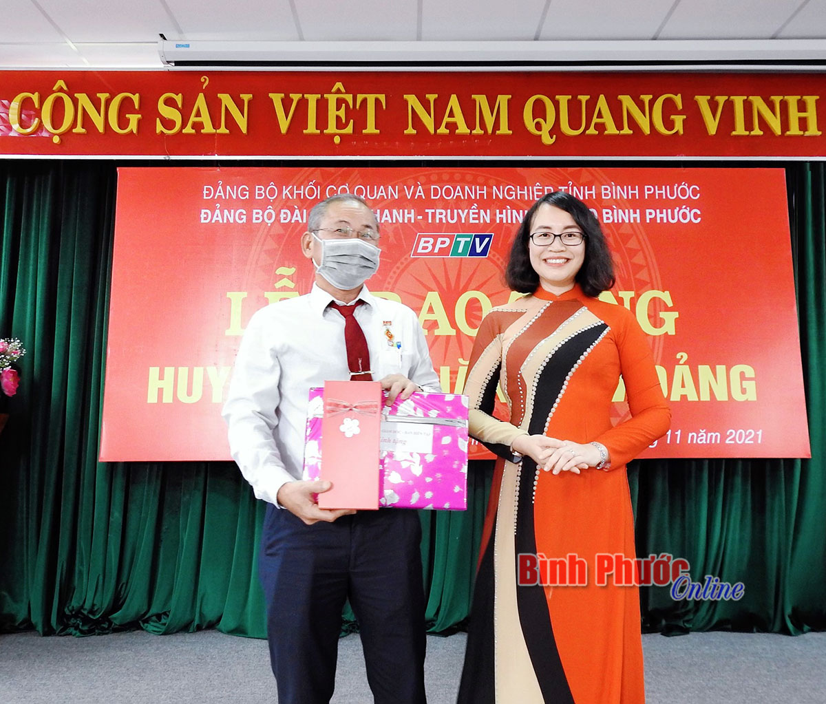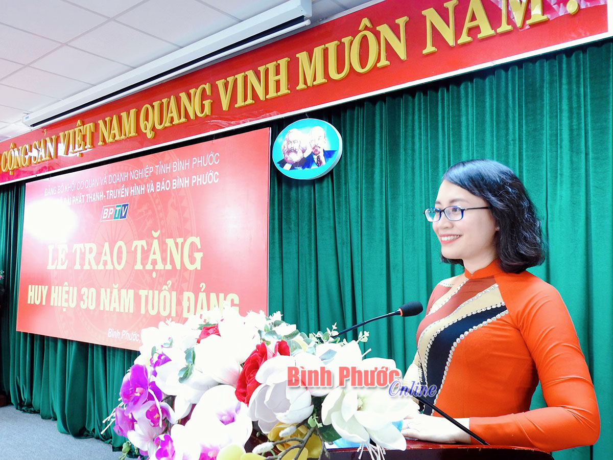 Tỉnh ủy viên, Bí thư Đảng ủy Khối Cơ quan và Doanh nghiệp tỉnh Nguyễn Phúc Hậu phát biểu tại buổi lễDự buổi lễ trao huy hiệu có Tỉnh ủy viên, Bí thư Đảng ủy Khối Cơ quan và Doanh nghiệp tỉnh Nguyễn Phúc Hậu; Tỉnh ủy viên, Bí thư Đảng ủy, Giám đốc - Tổng biên tập BPTV Nguyễn Thị Minh Nhâm cùng các đảng viên Đảng bộ Đài Phát thanh - Truyền hình và Báo Bình Phước.