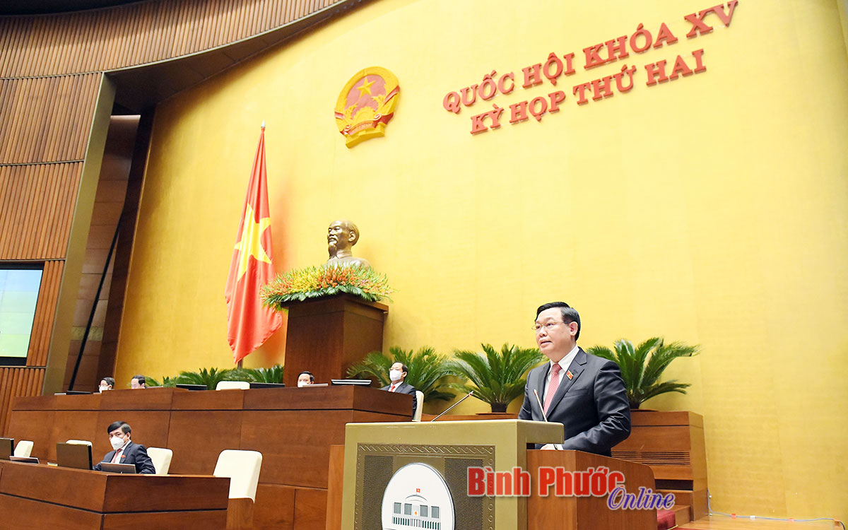 Phát biểu bế mạc phiên họp, Chủ tịch Quốc hội Vương Đình Huệ nhấn mạnh, các vị đại biểu Quốc hội đều thể hiện tinh thần thẳng thắn, khách quan, trách nhiệm với sự nghiệp phát triển chung của đất nước, đóng góp hiến kế cho công tác phòng, chống dịch Covid-19, công cuộc phục hồi phát triển kinh tế - xã hội và xây dựng, hoàn thiện thể chế.