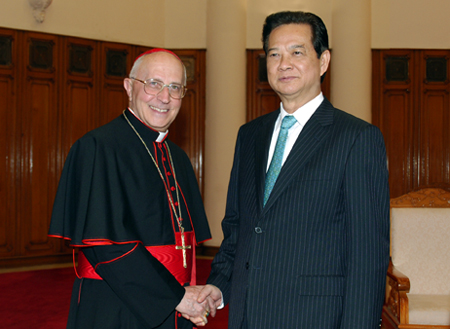 Thủ tướng Nguyễn Tấn Dũng tiếp Hồng y Fernando Filoni, Bộ trưởng Truyền giáo Tòa thánh Vatican đang có chuyến thăm và hoạt động mục vụ tại Việt Nam