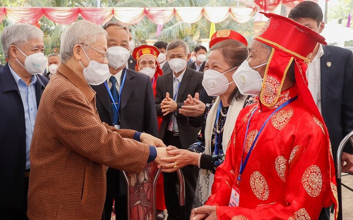 Tổng Bí thư Nguyễn Phú Trọng trong một lần tham dự ngày hội đại đoàn kết toàn dân tộc tại huyện Hoài Đức, thành phố Hà Nội. Nguồn Báo Phụ nữ Việt Nam