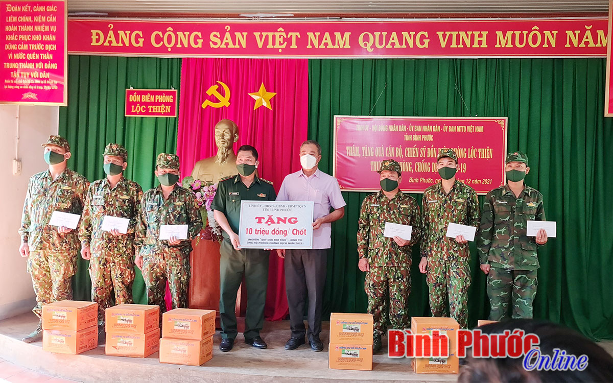 Đoàn thăm và trao quà cho chốt dân quân liền kề xã Lộc Thiện