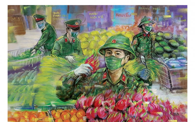 Nghĩa tình quân - dân trong tranh của họa sĩ Lê Sa LongBPO - Kỷ niệm 77 năm Ngày thành lập Quân đội nhân dân Việt Nam (22-12-1944 - 22-12-2021), mỗi người có những suy nghĩ, cảm nhận, cách thể hiện niềm tin yêu riêng của mình đối với lực lượng quân đội nhân dân Việt Nam. Với họa sĩ Lê Sa Long, bằng đường nét và màu sắc của mình, ông đã làm nên những tác phẩm nghệ thuật ghi lại sống động hình ảnh về tinh thần, trách nhiệm của người lính Cụ Hồ giữa thời bình.
