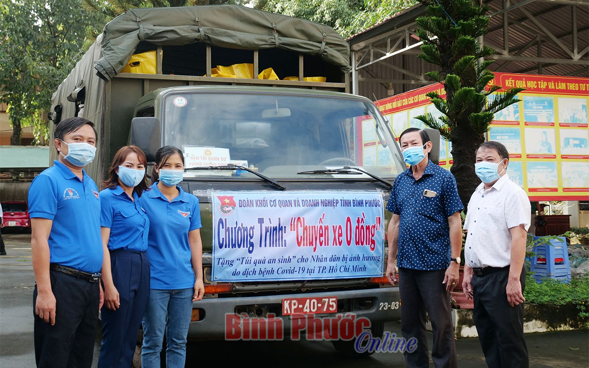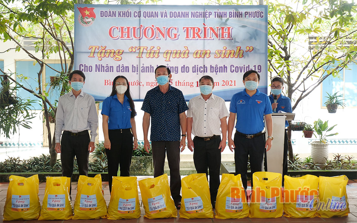 Đoàn khối Cơ quan và Doanh nghiệp tỉnh tổ chức chương trình tặng 250 túi quà an sinh với tổng trị giá 65 triệu đồng cho người dân TP. Hồ Chí Minh. Ảnh: Công Đồng