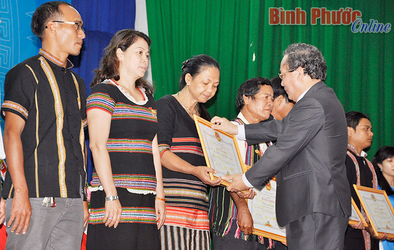 Phó chủ tịch UBND tỉnh Nguyễn Huy Phong trao bằng khen cho các cá nhân xuất sắc có nhiều đóng góp trong công tác dân tộc - Ảnh: H.T