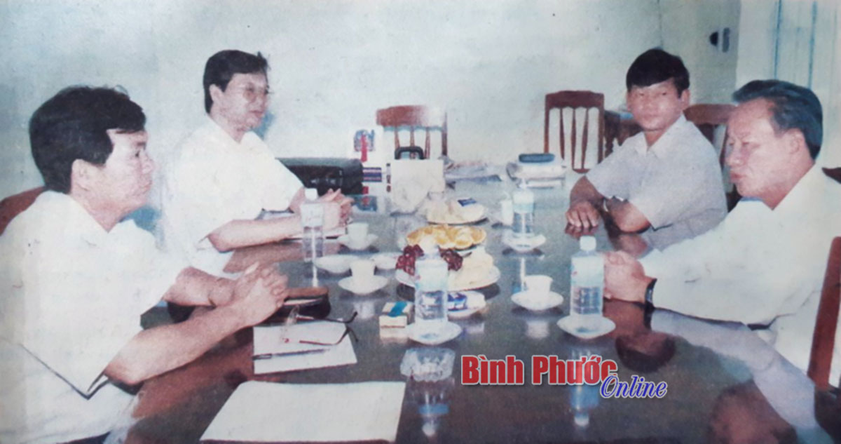 Phó bí thư Tỉnh ủy, Chủ tịch UBND tỉnh Bình Phước Bùi Huy Thống và lãnh đạo Thường trực Tỉnh ủy báo cáo tình hình kinh tế - xã hội của tỉnh với Ủy viên Thường vụ Bộ Chính trị, Trưởng ban Kinh tế Trung ương Nguyễn Tấn Dũng trong chuyến thăm, làm việc tại tỉnh ngày 8-4-1997. Ảnh tư liệu* Như trên ông có nói, hạ tầng giao thông của Bình Phước gặp quá nhiều khó khăn. Các lãnh đạo tỉnh đã bắt tay vào làm ngay hay phải chờ 2 năm như trụ sở làm việc?