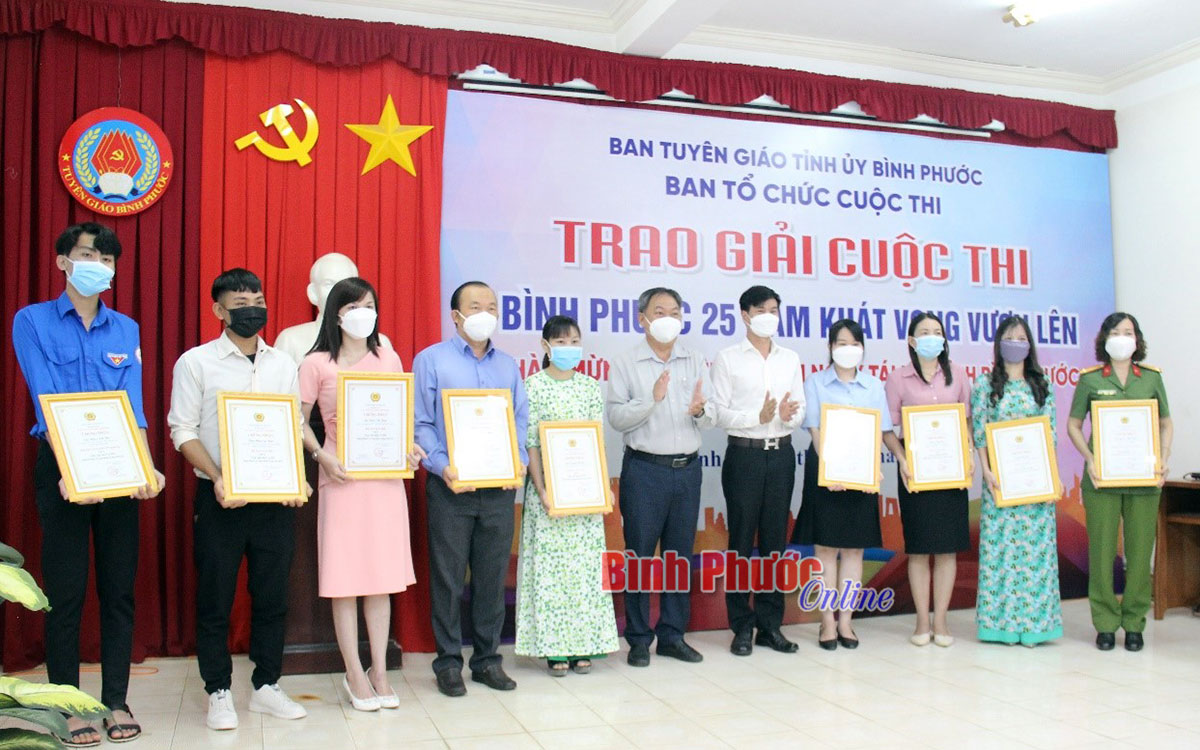 Triển khai từ đầu tháng 11, cuộc thi “Bình Phước 25 năm khát vọng vươn lên” được thực hiện theo 2 hình thức trắc nghiệm và thi viết hiến kế giải pháp. Theo đó, sau 5 tuần tổ chức cuộc thi, phần thi trắc nghiệm đã thu hút 67.790 lượt người với 93.473 lượt thi là công chức, viên chức, nông dân, công nhân, học sinh, sinh viên, lực lượng vũ trang từ 21 đơn vị. Kết quả, toàn tỉnh có hơn 27.000 người trả lời đúng các câu hỏi do Ban tổ chức cuộc thi đưa ra. Ban tổ chức đã trao giải thưởng cho 10 tập thể xuất sắc và 75 cá nhân.