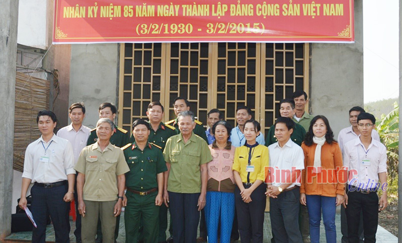 Căn nhà thứ nhất xây tặng hộ bà Hồ Thị Thân tại xã Đồng Nơ, có tổng kinh phí 110 triệu đồng. Trong đó Bộ chỉ huy Quân sự tỉnh hỗ trợ 60 triệu đồng, còn lại do gia đình đóng góp.