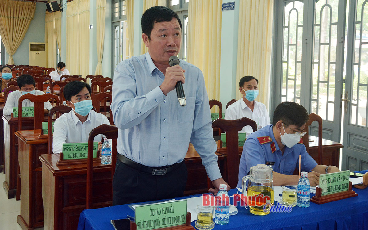 Chủ tịch UBND huyện Bù Đăng Trần Thanh Hòa thông tin, giải đáp các kiến nghị của cử tri địa phương