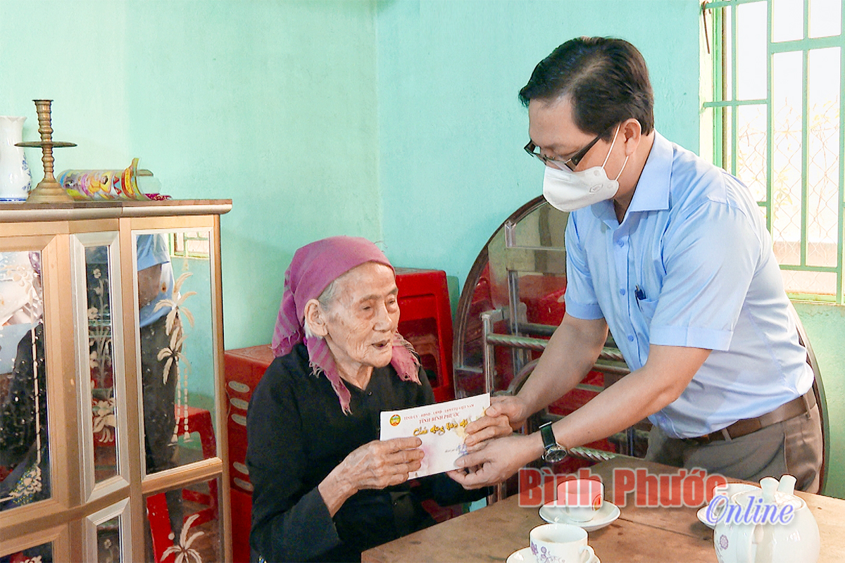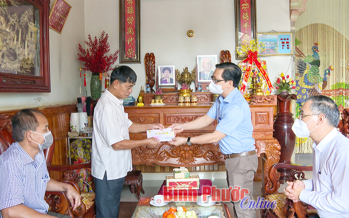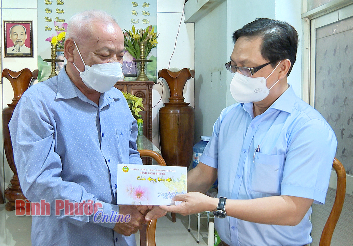 Ủy viên Ban Thường vụ, Trưởng ban Tuyên giáo Tỉnh ủy Hà Anh Dũng thăm, chúc tết, tặng quà nguyên Bí thư Huyện ủy Phước Long Quách Văn Lai