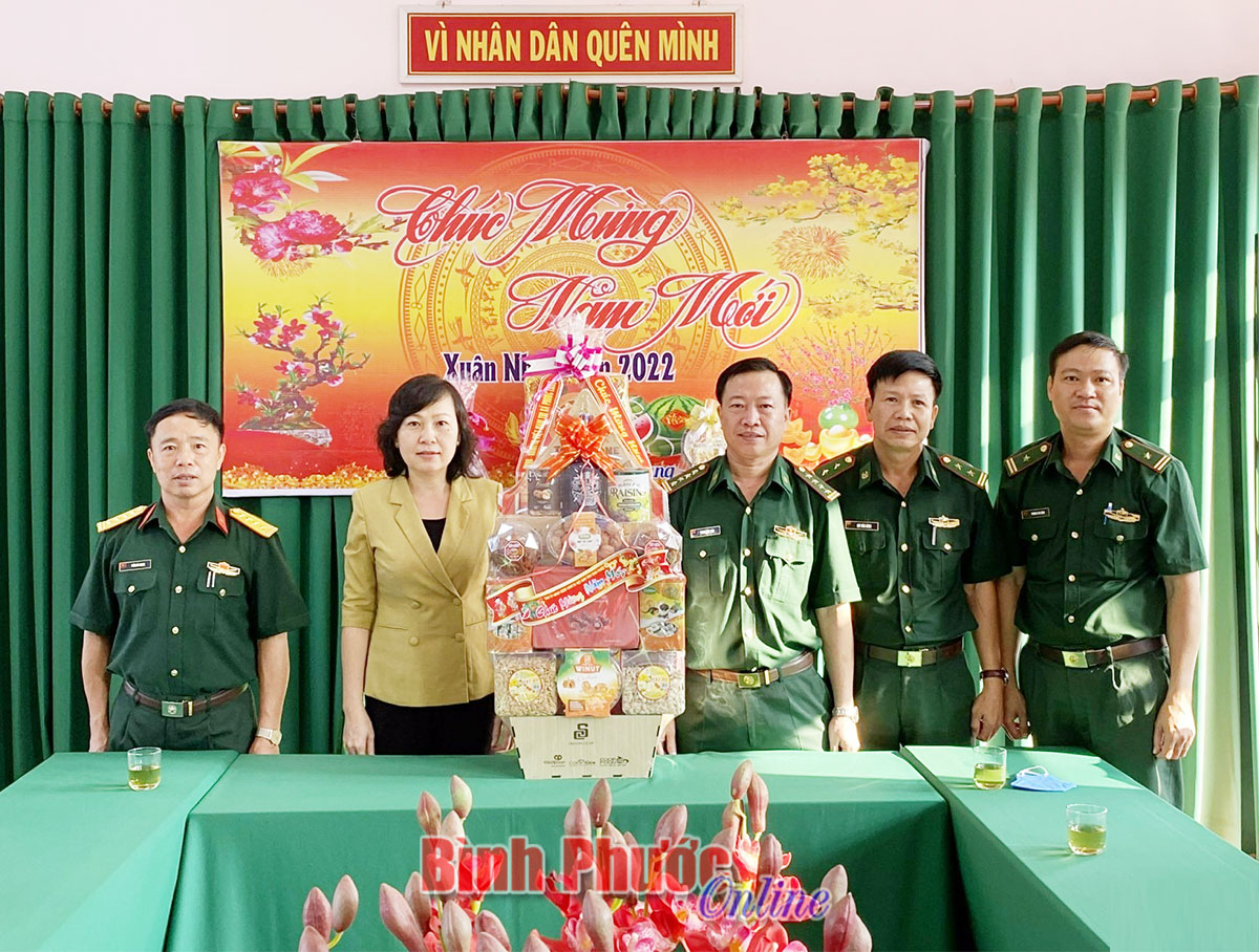 Phó bí thư Thường trực Tỉnh ủy, Chủ tịch HĐND tỉnh Huỳnh Thị Hằng cùng lãnh đạo Bộ CHQS tỉnh, Bộ chỉ huy Bộ đội biên phòng Bình Phước tặng quà cán bộ, chiến sĩ Tiểu đoàn Huấn luyện - Cơ động, Bộ đội biên phòng Bình Phước