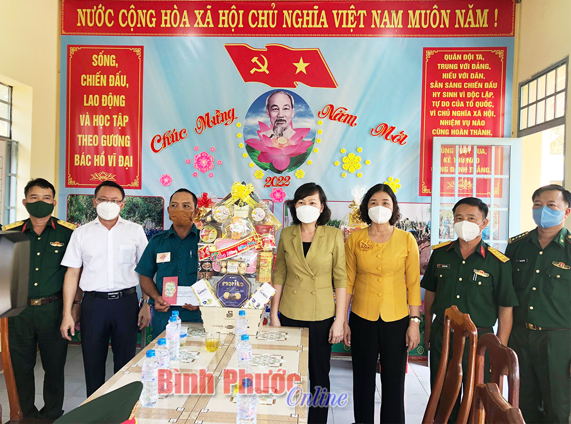 Phó bí thư Thường trực Tỉnh ủy, Chủ tịch HĐND tỉnh Huỳnh Thị Hằng tặng quà Chốt dân quân biên giới Thành Hòa, huyện Bù Đốp