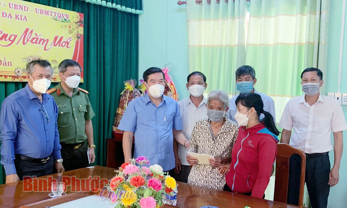 Đoàn cũng đến xã Đa Kia thăm, chúc tết bà Vũ Thị Tý, thuộc gia đình chính sách, người có công giúp đỡ cách mạng và trao món quà của tỉnh trị giá 1 triệu đồng.