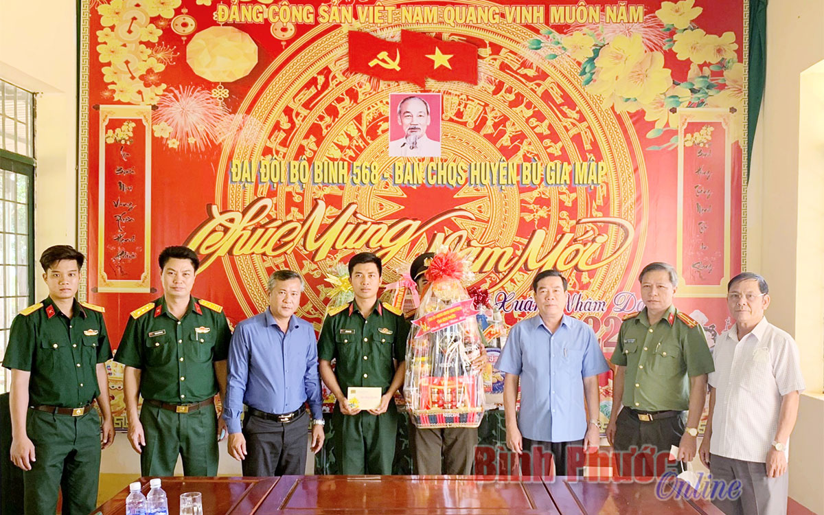 Tiếp đó, Đại tá Bùi Xuân Thắng và đoàn công tác đã đi thăm, chúc tết Đoàn Kinh tế - Quốc phòng 778 (Quân khu 7), đóng chân trên địa bàn huyện Bù Gia Mập và Đại đội bộ binh 568 - Ban chỉ huy Quân sự huyện Bù Gia Mập. Tại các đơn vị, thay mặt lãnh đạo tỉnh, Đại tá Bùi Xuân Thắng gửi lời chúc mừng năm mới đến cán bộ, chiến sĩ các đơn vị. Đồng thời, mong muốn cán bộ, chiến sĩ các đơn vị yên tâm công tác, tiếp tục nỗ lực rèn luyện về đạo đức, phẩm chất chính trị, tinh thần chiến đấu để hoàn thành xuất sắc nhiệm vụ Đảng, Nhà nước và nhân dân giao phó. Đồng thời, tặng mỗi đơn vị một phần quà của tỉnh trị giá 5 triệu đồng.
