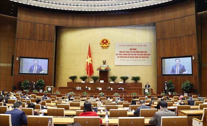 Đây là kiến nghị của các đại biểu dự Hội nghị tổng kết công tác HĐND các tỉnh, thành phố khu vực phía Bắc năm 2021 và triển khai kế hoạch công tác năm 2022, diễn ra sáng 21-2, tại Nhà Quốc hội. Ủy viên Bộ Chính trị, Chủ tịch Quốc hội Vương Đình Huệ dự và phát biểu chỉ đạo Hội nghị.
