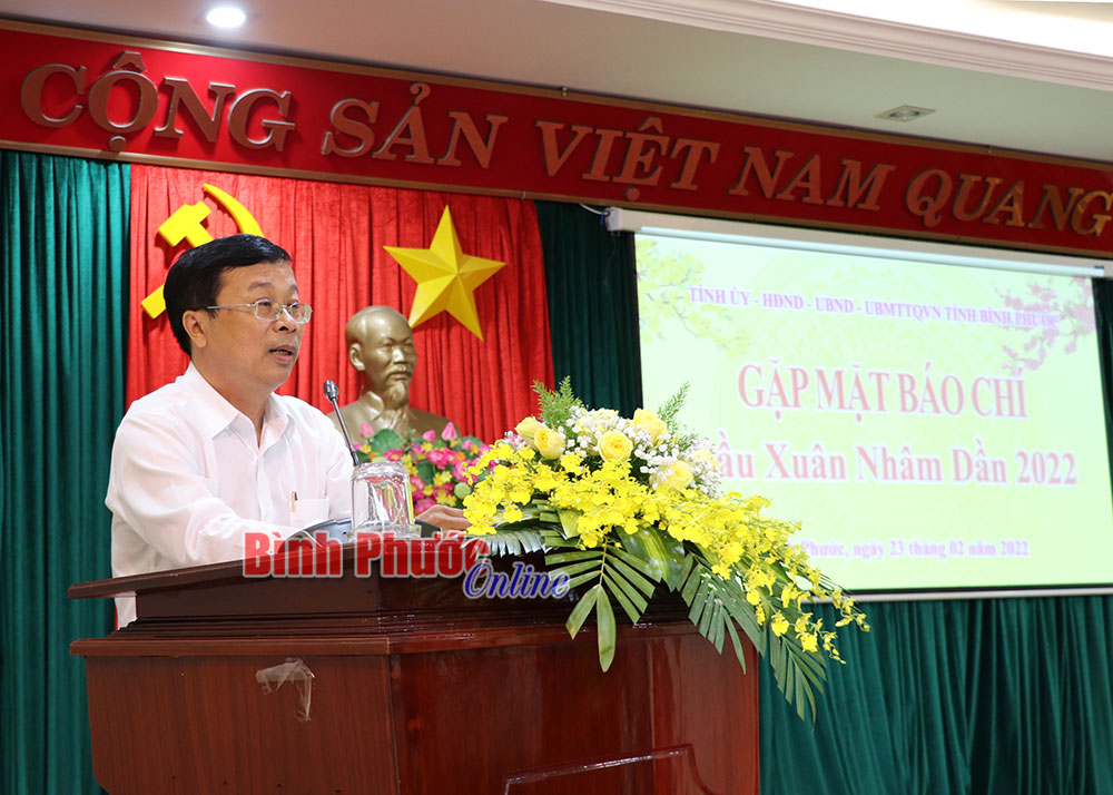 Ủy viên Trung ương Đảng, Bí thư Tỉnh ủy Nguyễn Mạnh Cường đánh giá cao thông tin tuyên truyền của các cơ quan thông tấn báo chí về tỉnh Bình Phước trong năm qua, nhất là trong thời điểm dịch Covid-19 diễn biến phức tạp. Các cơ quan thông tấn báo chí đã có nhiều tin, bài phản ánh xác thực về nhiều mặt trong tỉnh, trong đó có rất nhiều thông tin tích cực đã tạo động lực cho cấp ủy, chính quyền địa phương các cấp, toàn dân trong tỉnh phấn đấu, hăng say lao động sản xuất, đóng góp nhiều hơn vào sự nghiệp phát triển tỉnh. Trong chặng hành trình bứt phá đi lên phía trước, lãnh đạo tỉnh Bình Phước mong muốn tiếp tục nhận được sự đồng hành, ủng hộ của các cơ quan thông tấn báo chí, đặc biệt là việc tuyên truyền để tô đậm thêm bức tranh tươi sáng trên mọi mặt của tỉnh.
