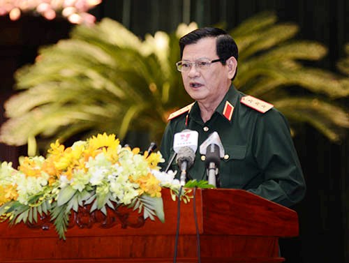 ![]() Thượng tướng Nguyễn Thành Cung phát biểu khai mạc hội thảo. |